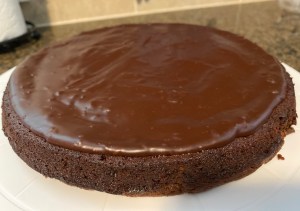 The icing for this cake is easy to throw together too; though you have to wait until the cake is completely cool before you can put the icing on top. As a test, my husband whipped the icing the second time we made this cake and he said it made it more cake-like rather than just feeling like the ganache was just a glaze. Either way – both tasted delicious. 🙂