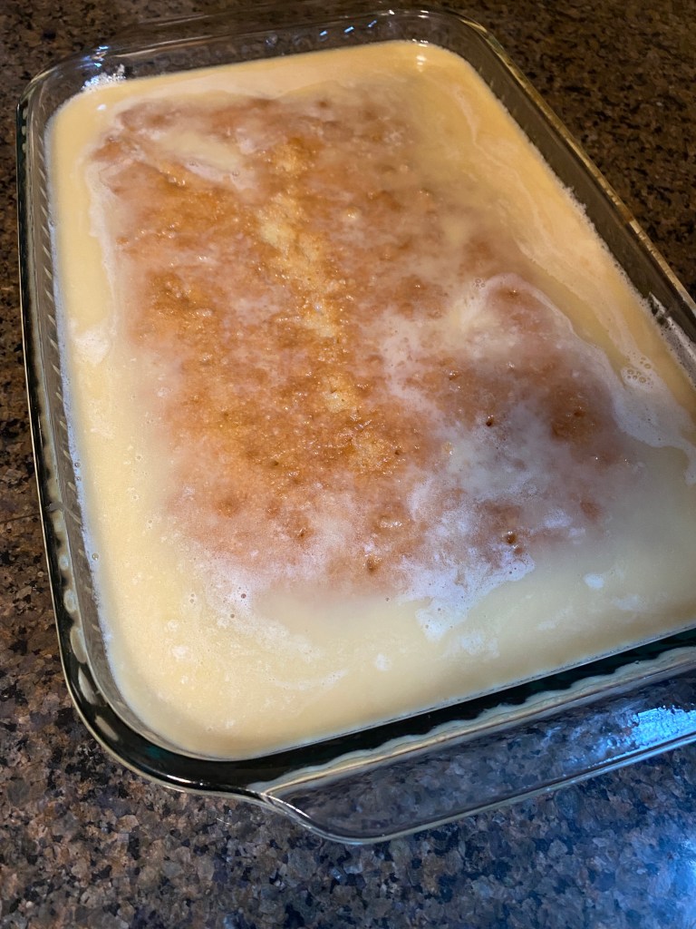 I didn’t include the golden syrup as we don’t have that nor did I include the Star of Anise. I wanted to get some Amarula Cream to use in the sauce but it was raining today and I didn’t feel like getting out. Plus, I figured I’ll try this without first and then if we like it I’ll try it with the Amarula Cream the next time. I poked holes in the cake so the sauce would seek down a little more but I think it needed a few more as the cake was a little dry.