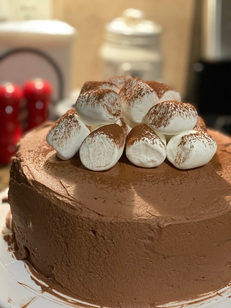 I posted the recipe for Hot Chocolate Macarons yesterday and as promised I wanted to post part two of my themed dessert baking for this week. I saw the recipe for this Hot Cocoa Cake “The Perfect Cake” recipe book from America’s Test Kitchen and it looked so fun! I hadn’t planned on making it the same night as the Hot Chocolate Macarons (and probably would not recommend it as both recipes are a little time consuming) but they looked super cute together so it was worth it.