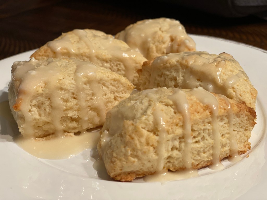 The glaze is what makes this recipe unique and unfortunately my version was probably less maple-y because I continue to forget that I don’t keep maple extract on hand. Every single time I think, “I’ll just use maple syrup” but it isn’t the same. The glaze still tasted good, but I felt like I missed out on a lot of the flavor by not having the extract. Regardless, these are very good and if you’re able to eat them while they’re still a little warm it’s even better!