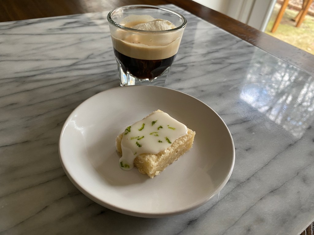 This is where the ease ended for me as I COULD NOT get these to stay in the shape of the cylinder. It was still super crumbly; even after I added some key lime juice and water to help it hold together and let it sit in the freezer again. Not to be defeated, I gave up making the slice and bake cookies and poured the dough into a greased 8×8 pan to make shortbread squares. I pressed it down really well (like you would with a pie crust) and then popped it into the oven. Since I wasn’t making individual cookies I added about 10 minutes to the clock, but I started checking on it every 2-3 minutes to avoid it over baking or burning.