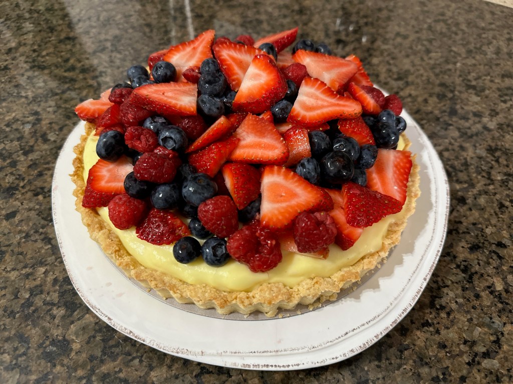 I topped mine with strawberries, blueberries, and raspberries and had planned on doing the glaze but I didn’t think it needed it. I think it’s prettier than the last berry tart I made, but personally I think the other one tasted better. The custard wasn’t my favorite, but it certainly wasn’t bad! I might adjust things just slightly next time but I would make this again. As a note, this is really best the day it’s made as the crust can get a little soggy and the fruit starts to look a little sad so this is great for a crowd.