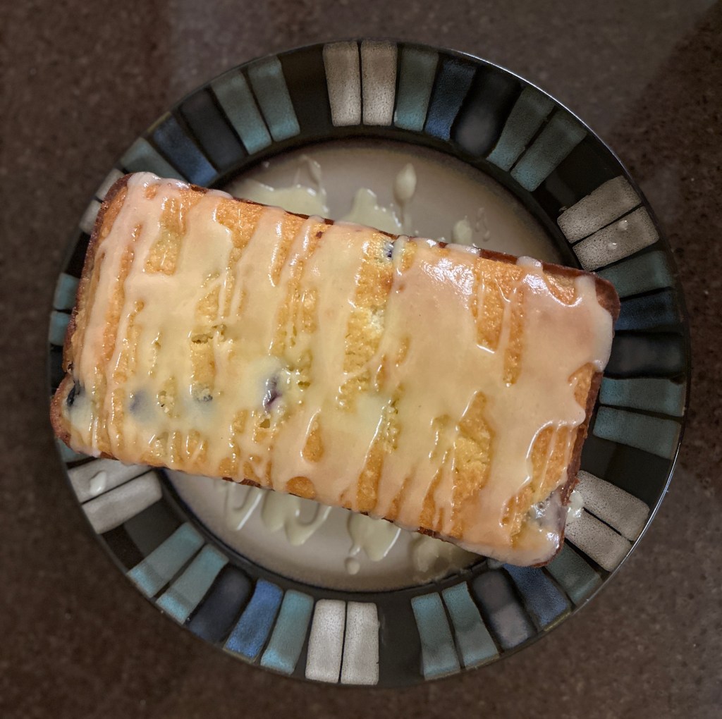I LOVE the lemon loaf from Starbucks and while this isn’t the same it was delicious! It’s quite simple and feels a lot like a cake recipe since you mix together the dry ingredients and then the wet ingredients (minus the milk). Then you alternate between the dry ingredients and milk until it’s just mixed together; gently adding in the blueberries. That’s it – very simple!