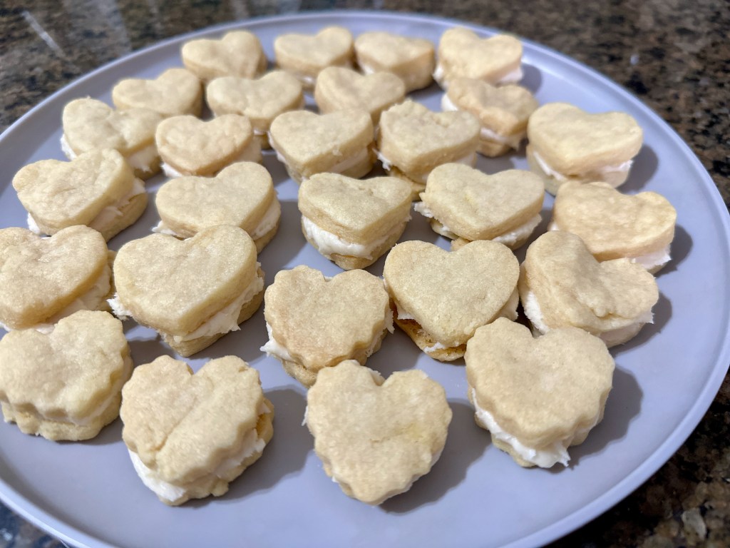 The filling was also super easy to make and I love that this is a thicker filling. Some of the sandwich cookies I’ve made this past month have been fluffier or thinner so it’s hard to really get a good bite of everything if it’s oozing out. Because it was so thick I had to use a knife to spread it so it’s a little messy, but they turned out pretty good.