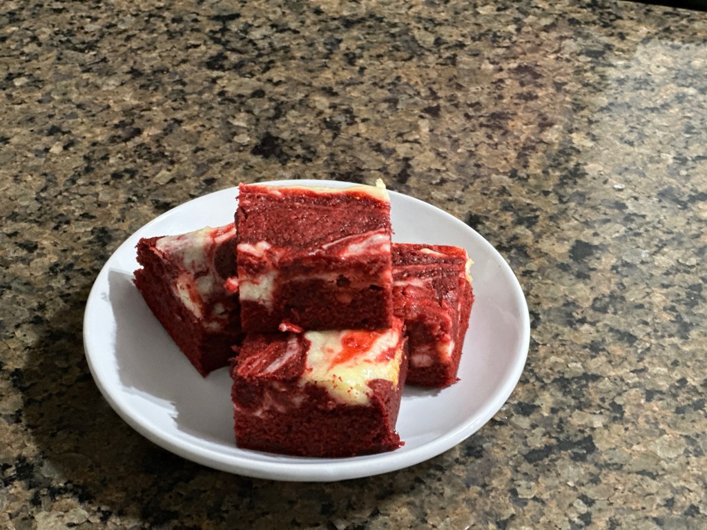 It’s been a long time since I made cheesecake brownies and when I saw these Red Velvet ones I thought they’d be perfect for this month.