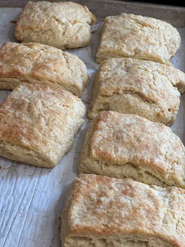 National Biscuit Day isn’t for another month (May 29, 24), but we made these recently so I figured I’d go ahead and post about it. We’ve been in a big biscuit kick, especially on Saturdays when we have more time in the morning. Normally, we make these Cream Biscuits since they’re quick and easy, but we changed things up by making these Flaky Biscuits from Brian Lagerstrom.