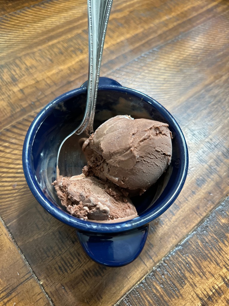 I was a little worried because it was SUPER thick when we poured it into the ice cream maker but it churned ok. It firmed nicely and was really really good. My husband said this is the best chocolate ice cream we’ve made before so it will definitely make it into the rotation. My picture doesn’t really do it justice, but rest assured – it was 10/10!