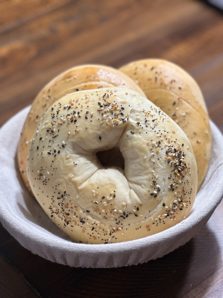 These are definitely breadier than traditional bagels. While these are best the day you make them I didn’t want to get up at the crack of dawn to make these so I could have them for breakfast. We just toasted them the next day and they were fine. I topped mine with cream cheese, smoked salmon, and a little fresh dill and it was very good. I will say that it could have used more salt in my opinion and that was some of the resounding comments on the recipe. I kind of missed the chew of the bagel but they were fun to make, pretty easy, and looked pretty impressive!