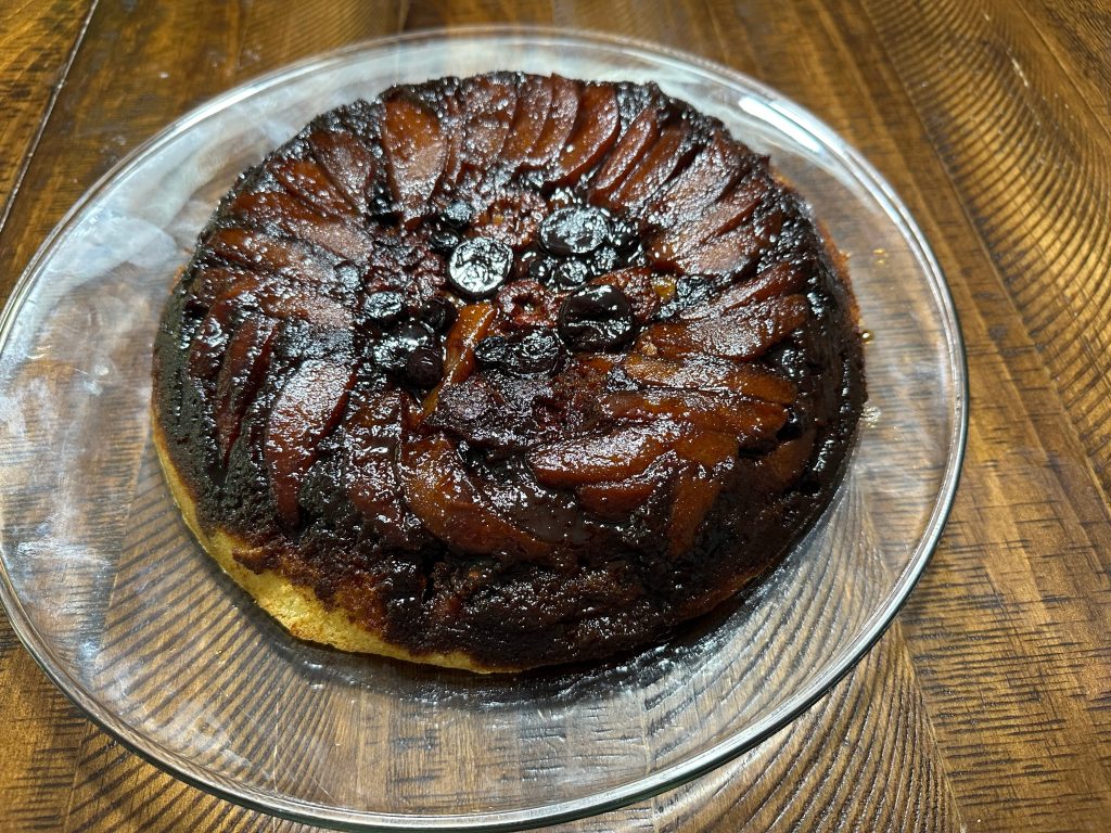 This is one of those recipes that feels like a common one and yet this is the first time I’ve ever made an upside cake. Traditionally, it’s made with pineapple rings, but I liked that this recipe used different fruits.