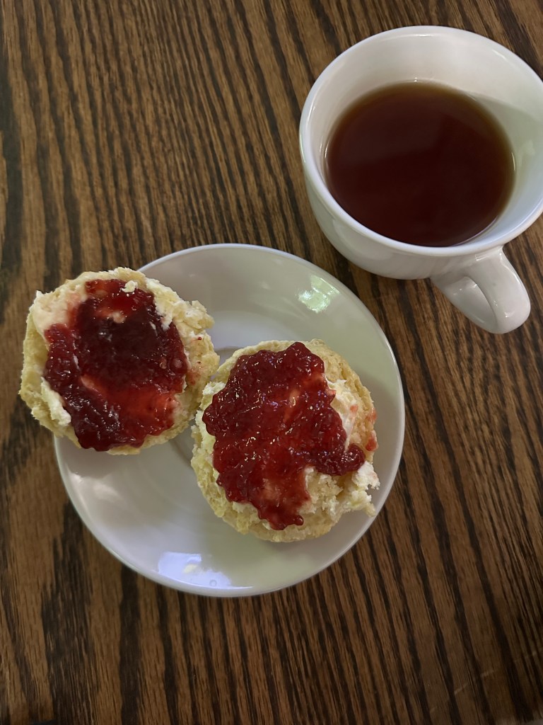 These turned out beautiful! They also tasted delicious both by themselves and with the clotted cream and some strawberry jam. We had a nice Earl Gray tea with ours and it was perfect! Honestly both of these recipes are super easy (maybe a little time consuming for the clotted cream) but totally worth it!