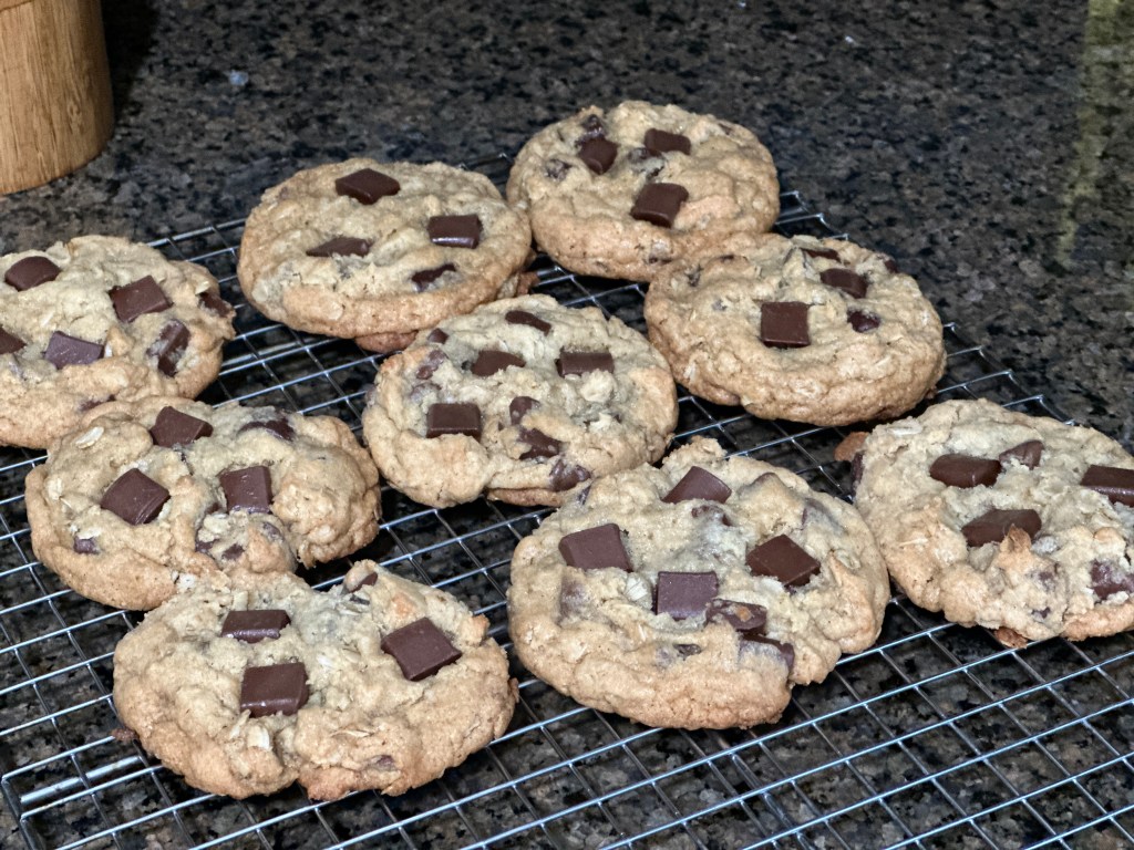 The instructions say to use a big scoop and scoop out the cookies and then split in half and mash together with the ragged side face up. I had no idea what this meant until my husband explained it so the first round of cookies were just normal. I did do that to the second batch and I guess they looked a little better but honestly I’m not sure I could tell a huge difference. It’s not like it’s super time consuming so might has well. It says to bake for 12-13 minutes but mine needed close to 18 before they were done.